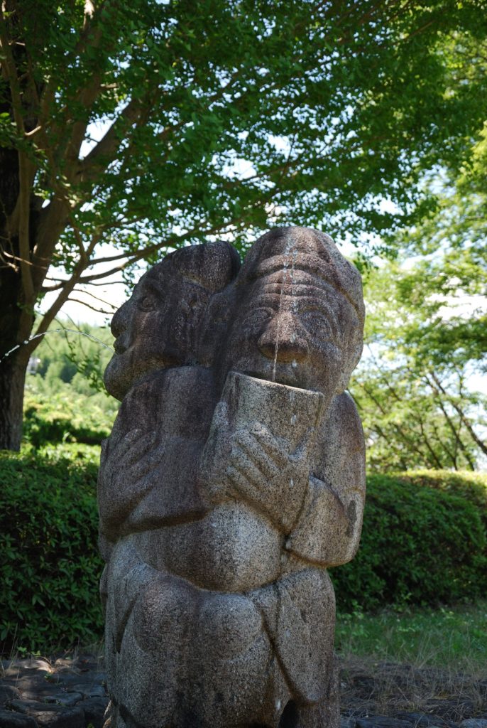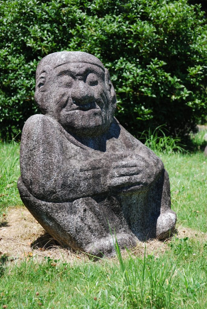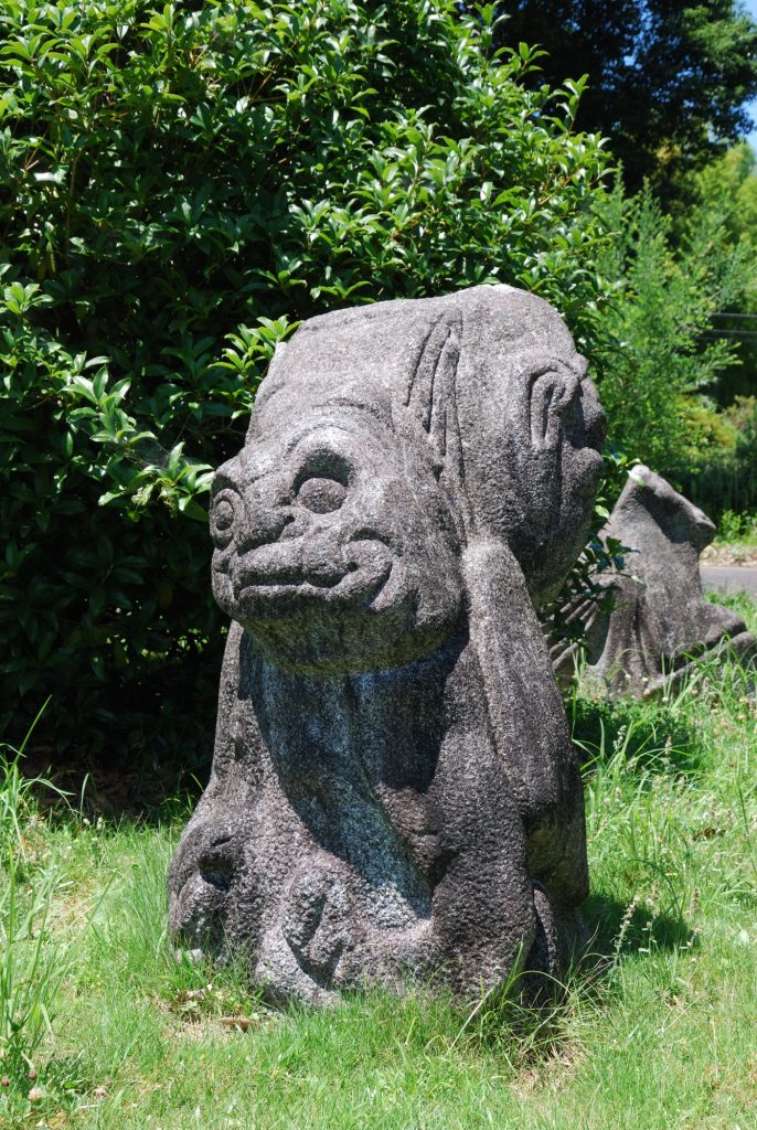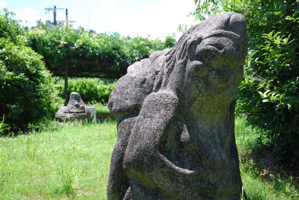 資料館の庭には複製された飛鳥の石像や石造物などがたくさん展示されています。