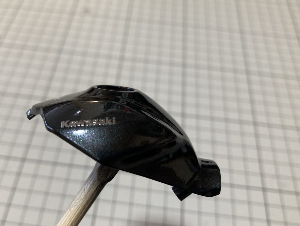 先にマークを貼っていたタンク部分は比較的緩やかなカーブになっていて問題なく綺麗に貼れていたので迂闊でした。
