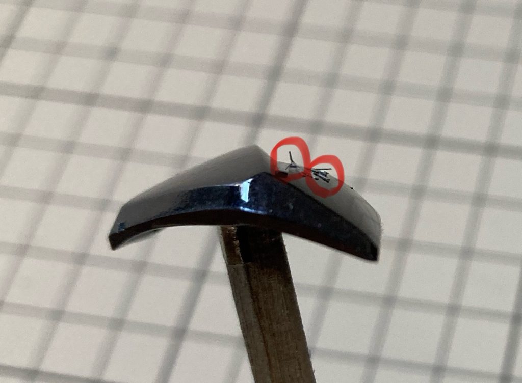 貼ったインレットマークの上からさらにデカールを貼るので軽くクリアを吹いておこうと思い表面を確認しようとしたところ、