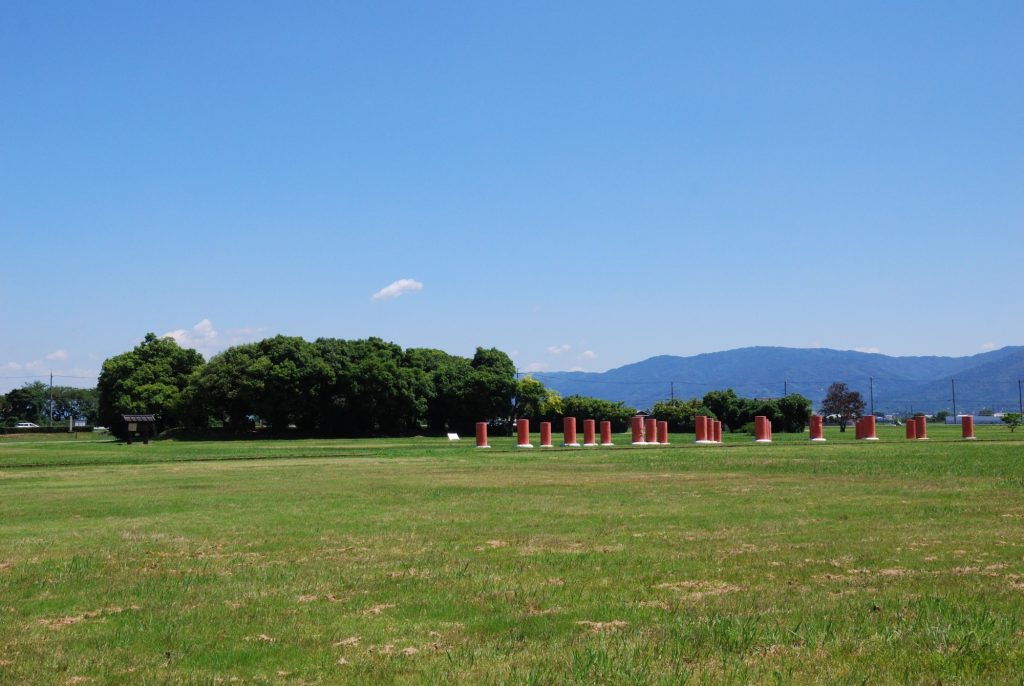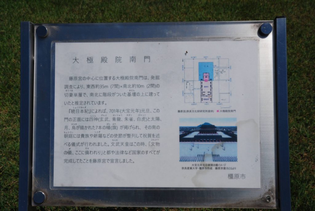 藤原京跡は大和三山(耳成山、天香久山、畝傍山)に囲まれた場所にあり、