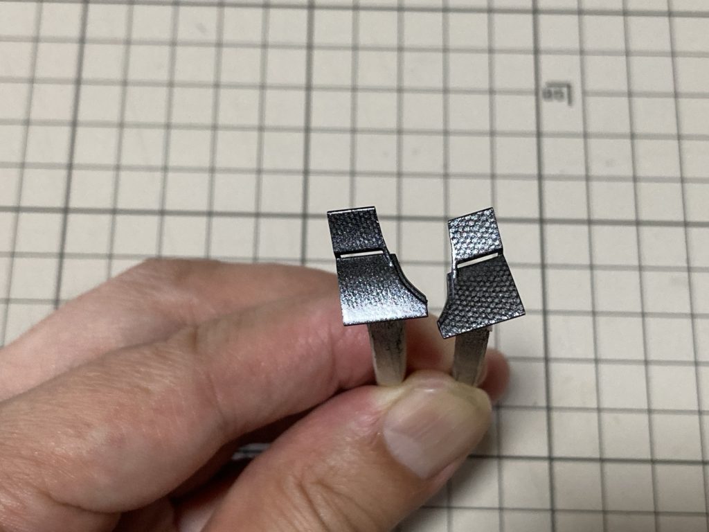 左側のパーツのちょっと押し付けが弱かったのか塗装しているのかわかりにくいので、