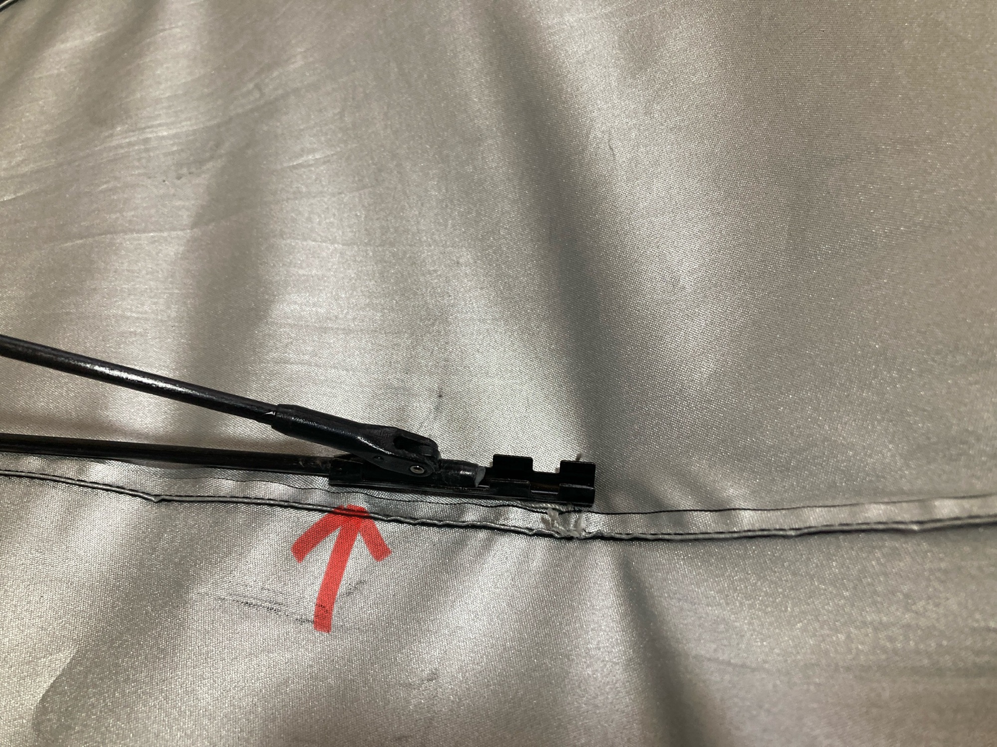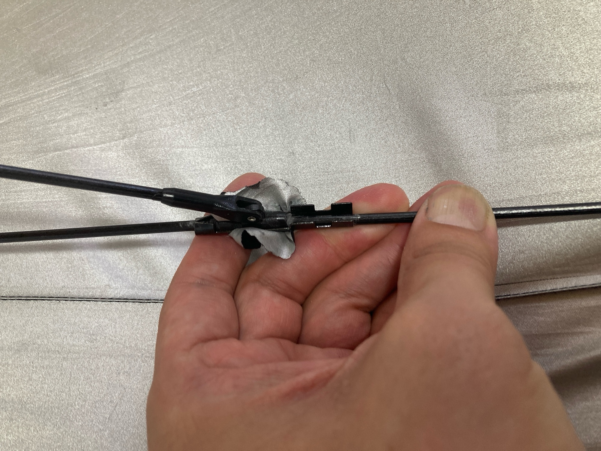 このとき露先(傘の一番外側についてる骨を差すポッチのような部品)に骨を差してみてちゃんと開くかどうか試してみましょう。
