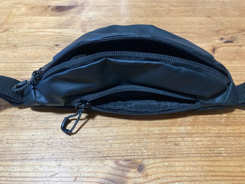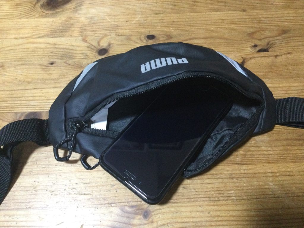 4.7インチのスマホとカギを入れても余裕があるサイズです。ハンドタオルとワイヤレスイヤホンくらいならまだ入りそうです。