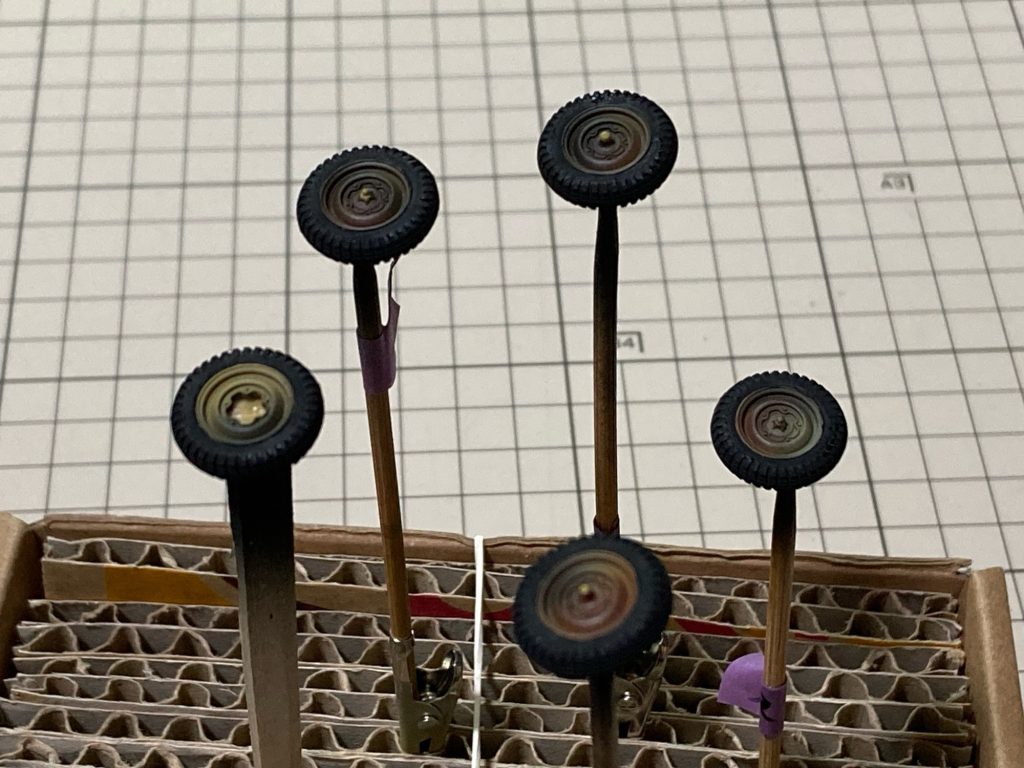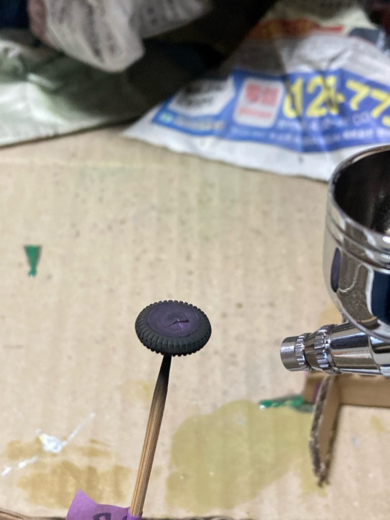 マスキングを剥がしてホイールとタイヤの境界部分を筆塗りで修正しました。