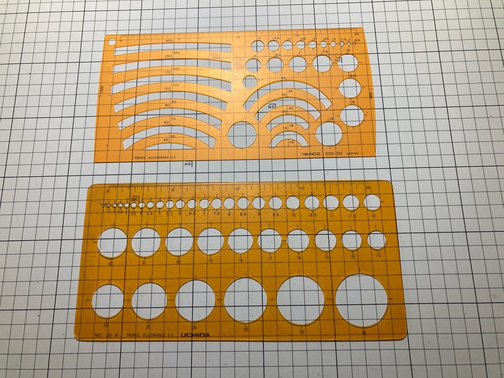 これは製図用のテンプレートですが、ひとつあると便利です。