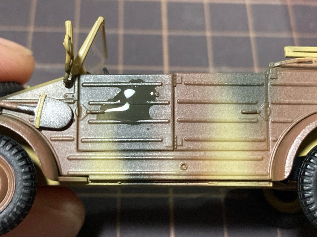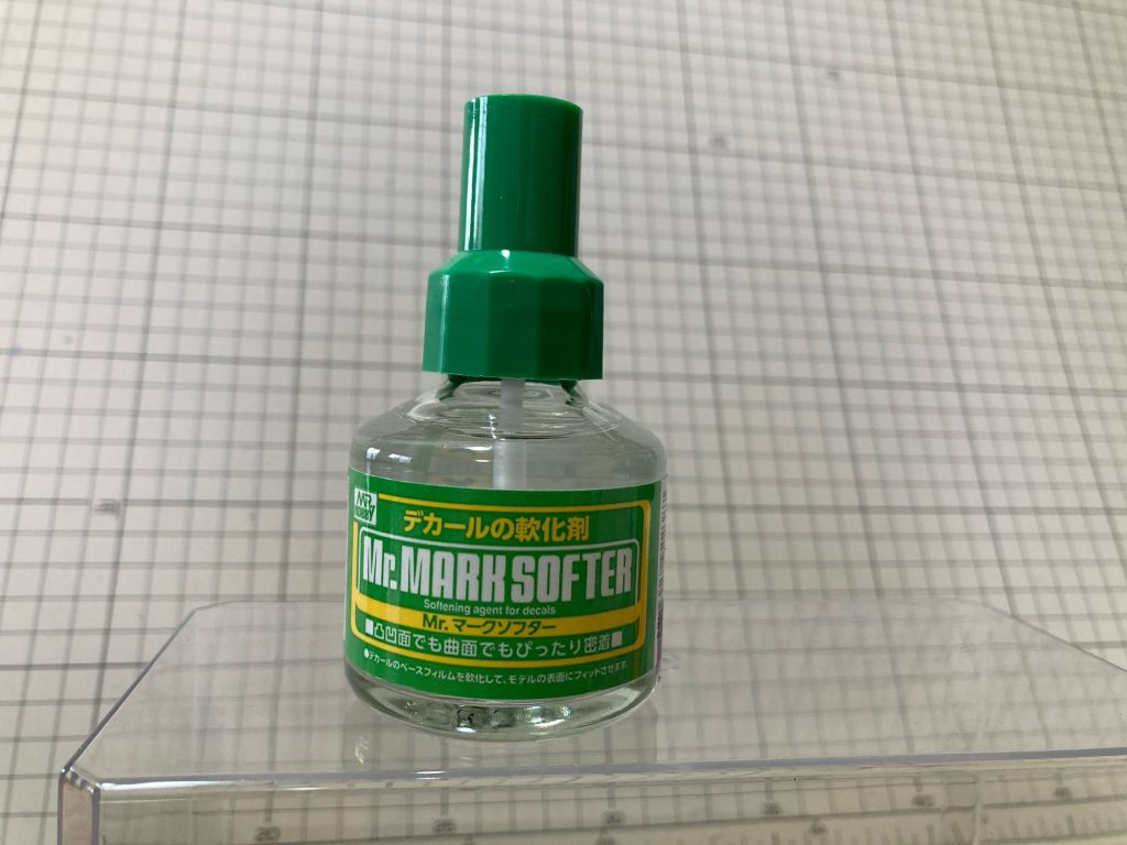マークソフターに対して10%程度の水で薄めてデカールの上からペタペタと塗ります。
