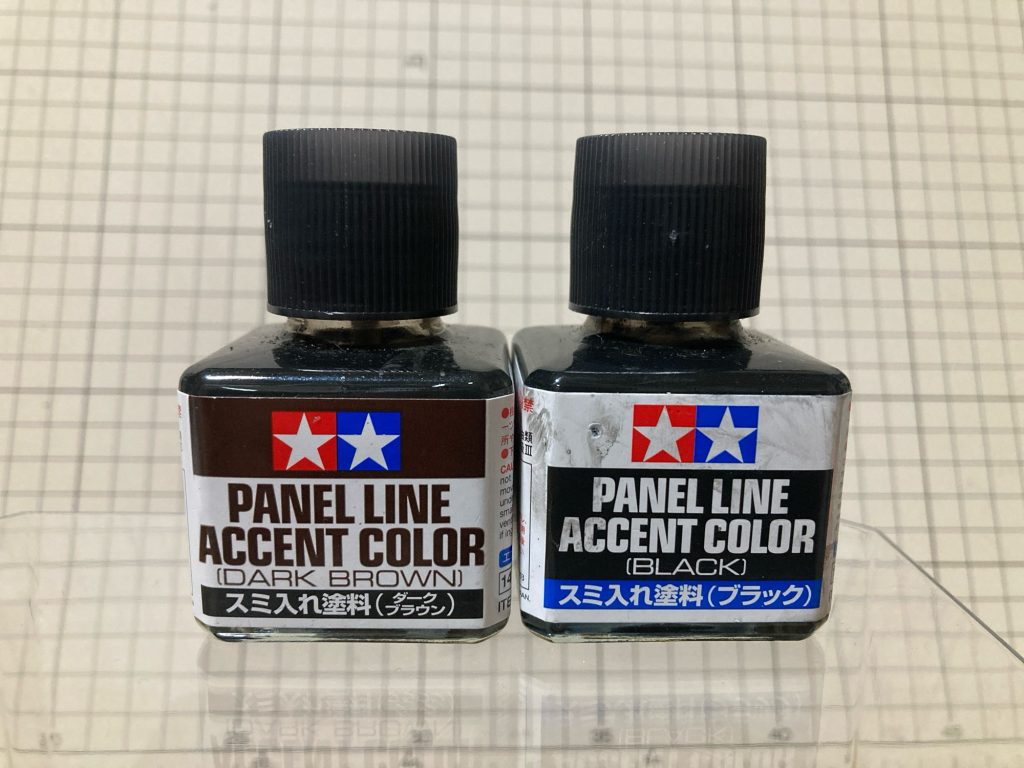 ミリタリーモデルではよく「ブラック」と「ダークブラウン」を使います。