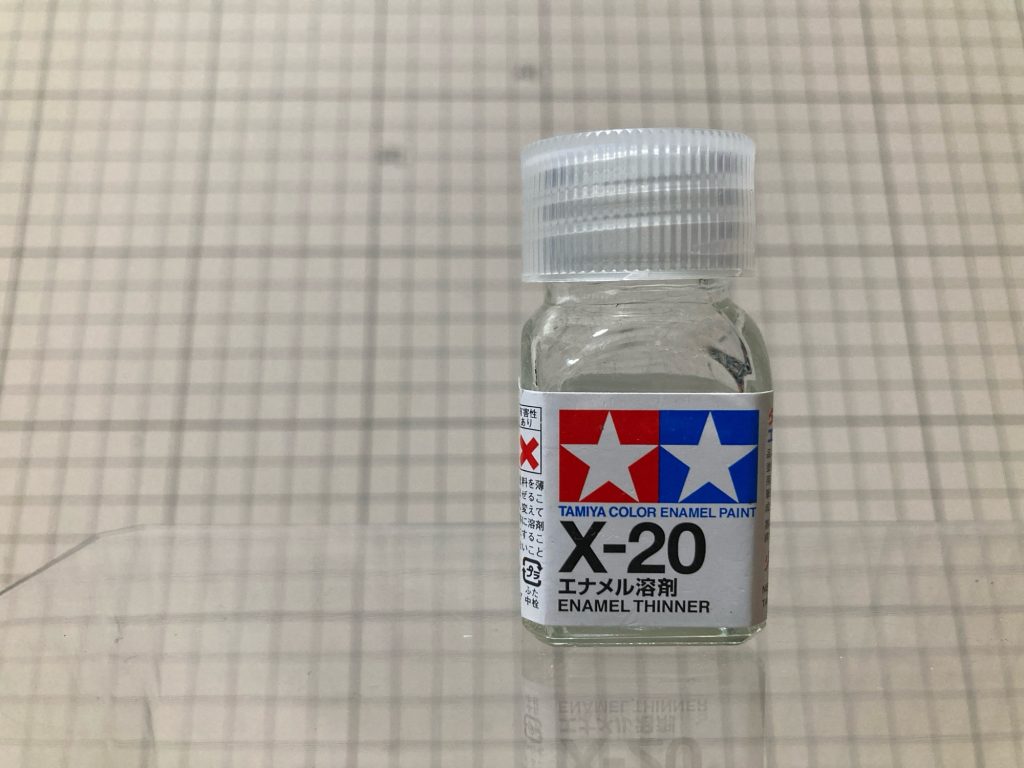 ある程度スミ入れ塗料が乾いてきたらエナメル溶剤で拭き取っていきます。
