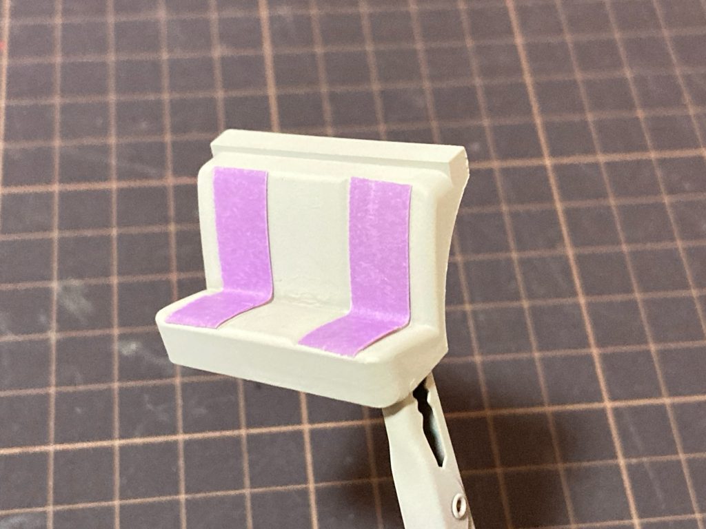 シートはタミヤのXF-55デッキタンとミスターホビーミディアムブルーで塗り分けます。