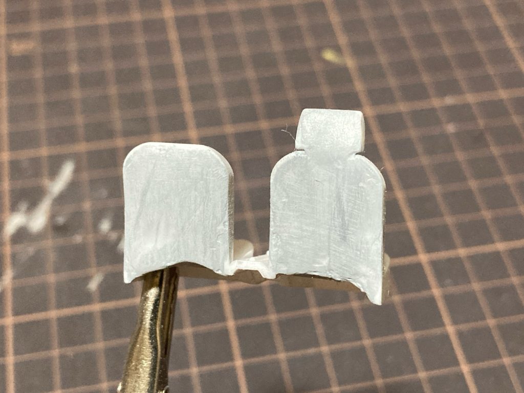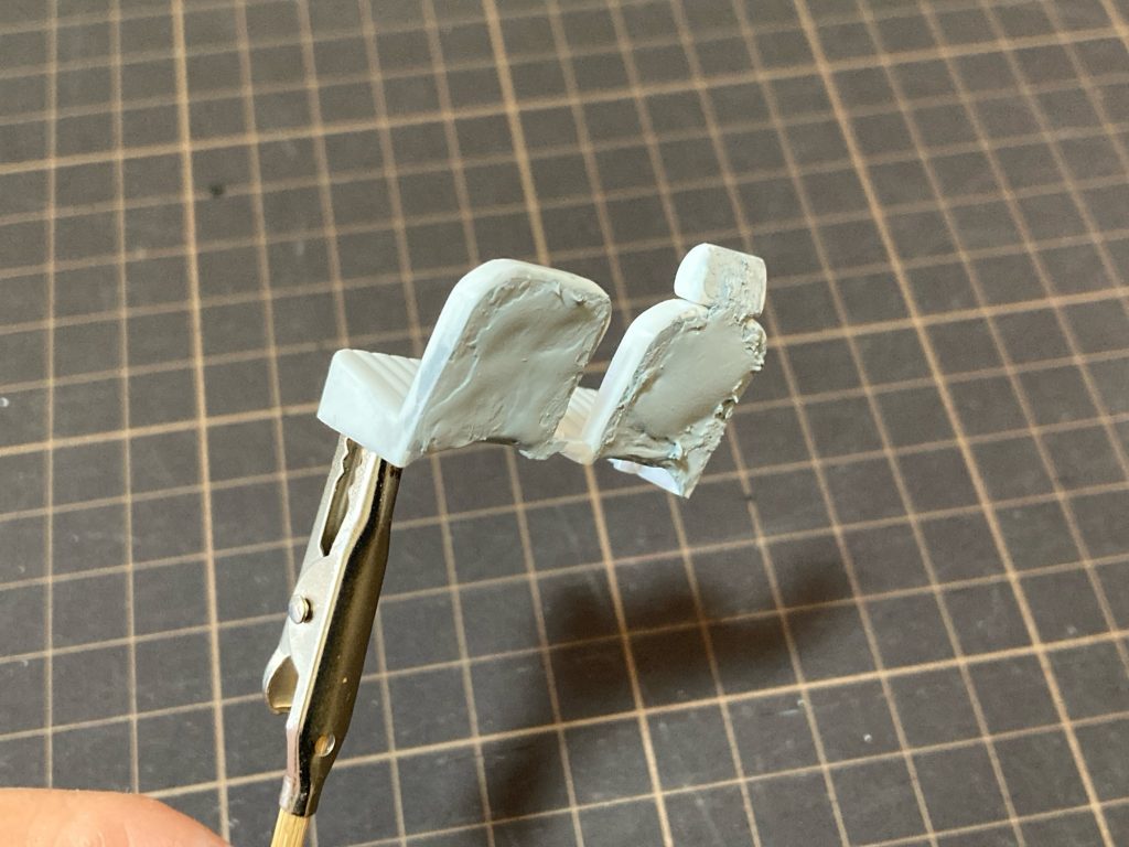 金ヤスリとペーパーでこんな感じにカタチを整えてから塗装していきます。