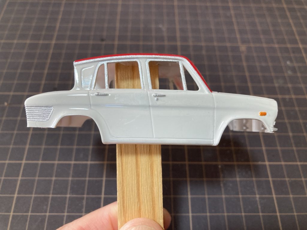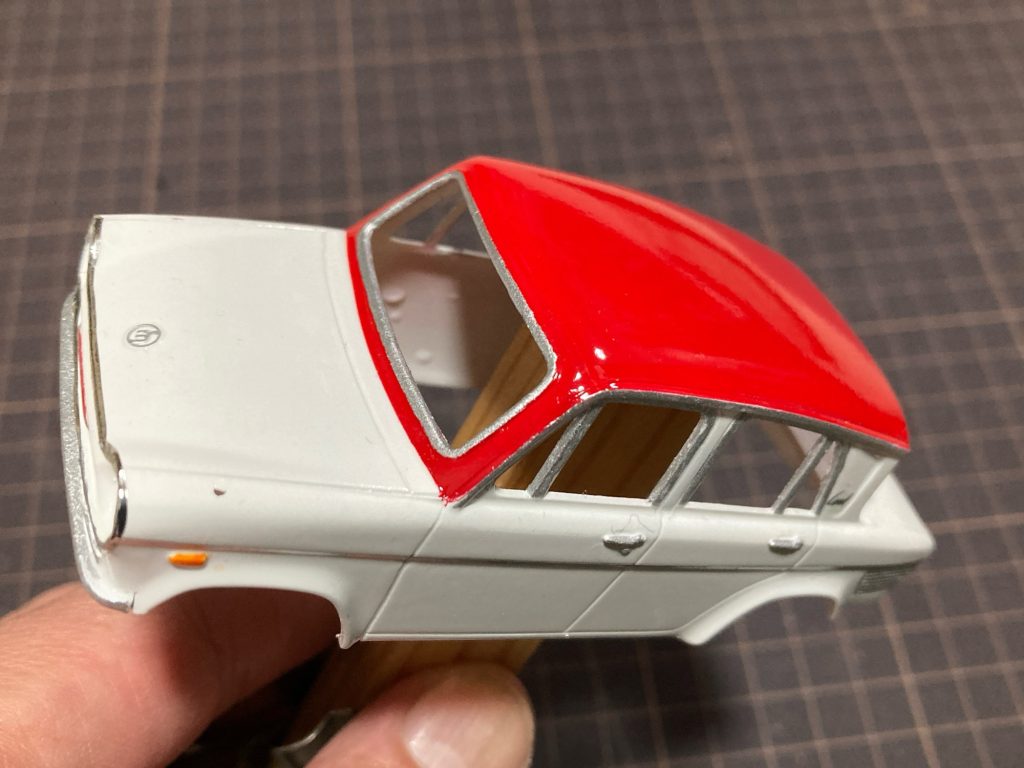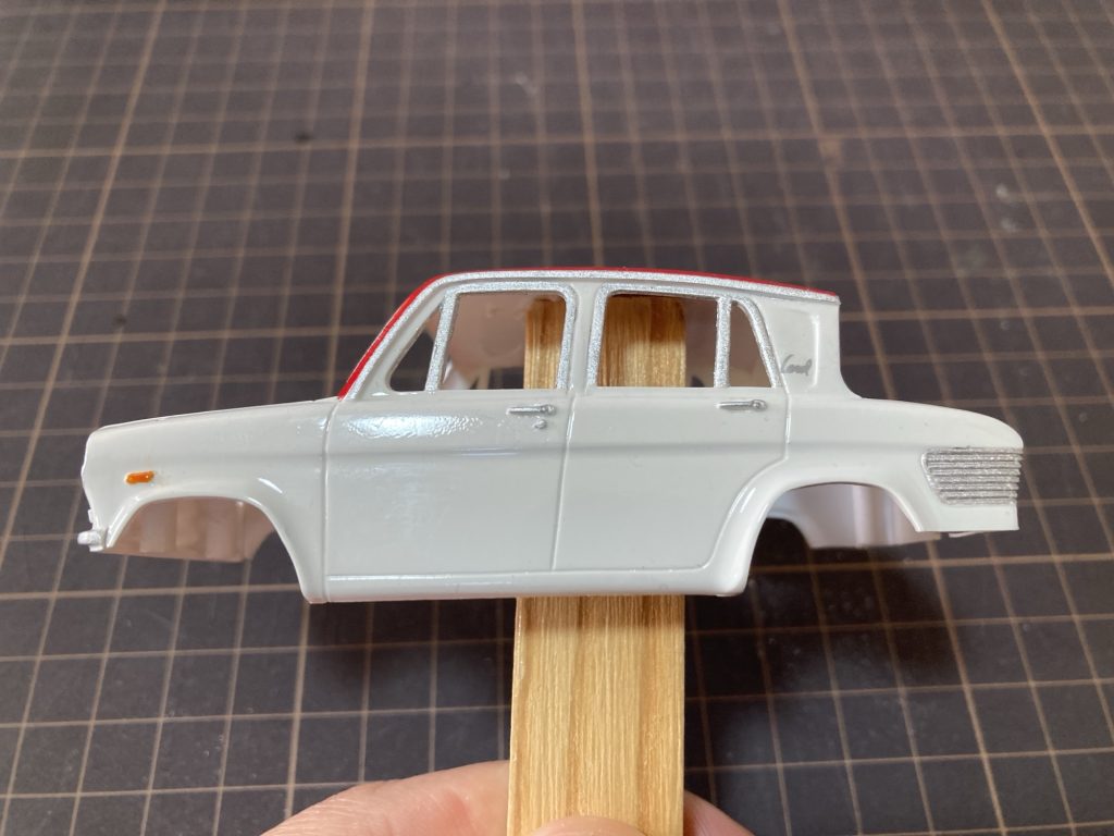 窓枠のシルバーを筆である程度塗り分けました。
