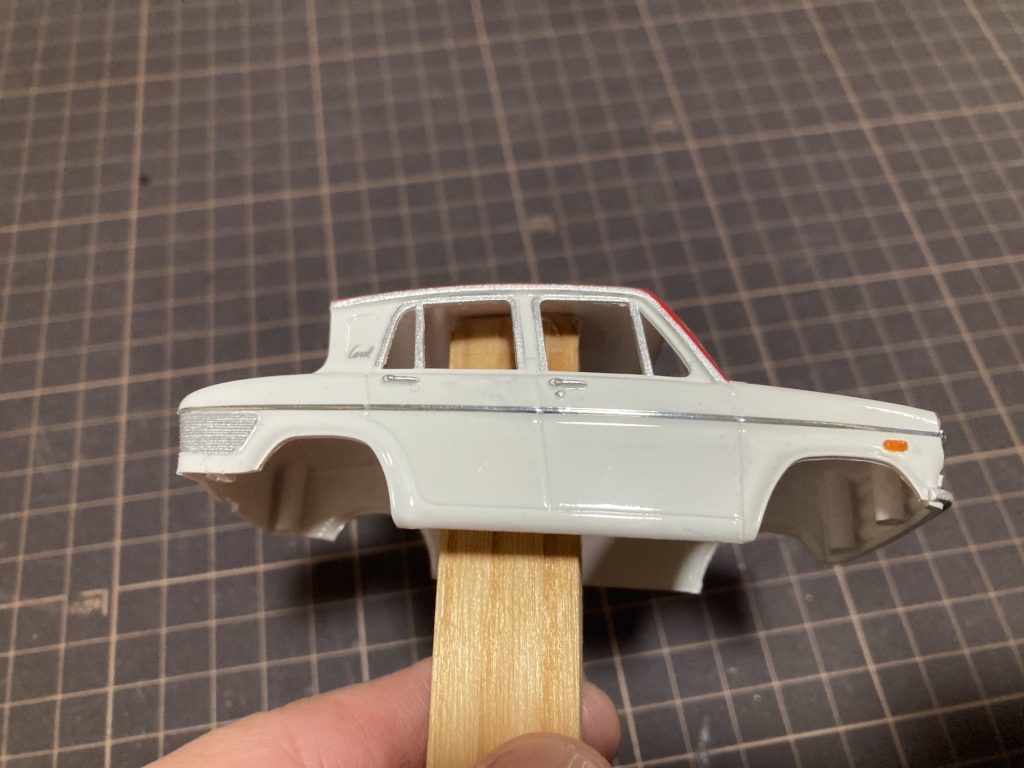実車にはサイド部分にメッキモールがあるのでミラーフィニッシュで作っていきたいと思います。