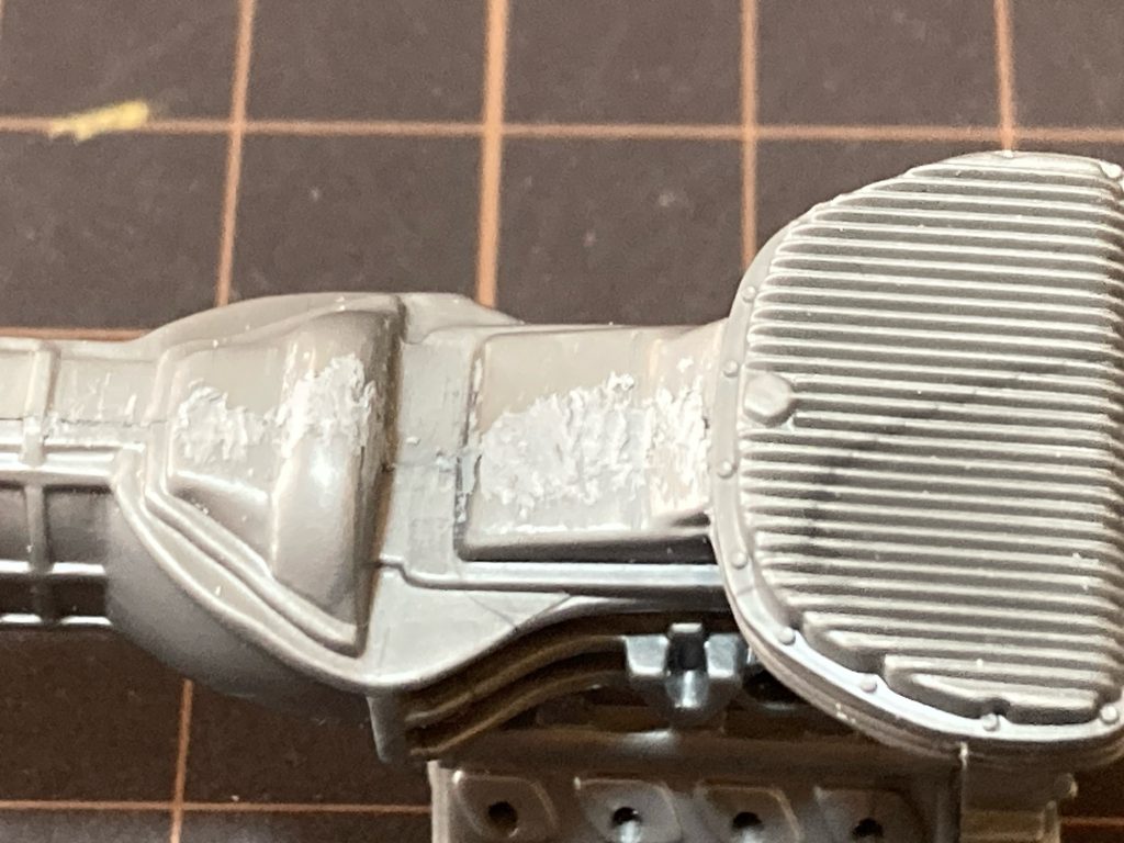 張り合わせるとズレが出てくる場所がありますのでパテで埋めて→乾燥→整形をしています。