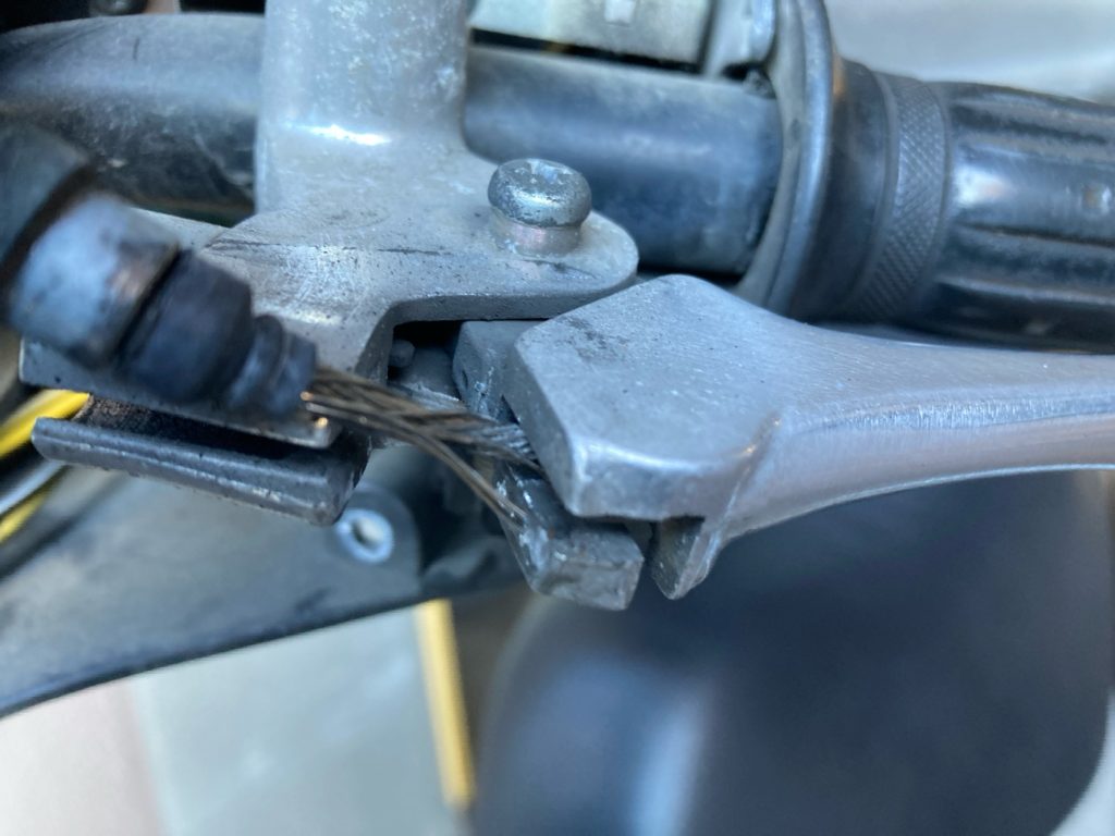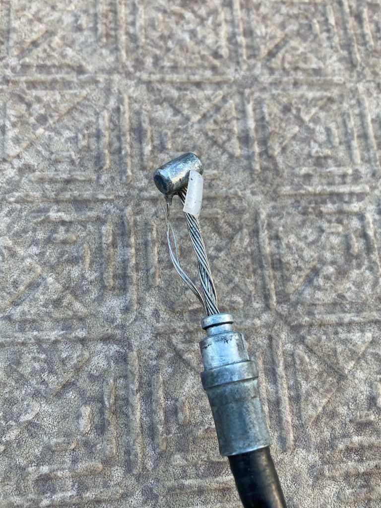 ブレーキ側のワイヤーをみたらすぐに今回のブレーキ不調の原因が発覚しました。