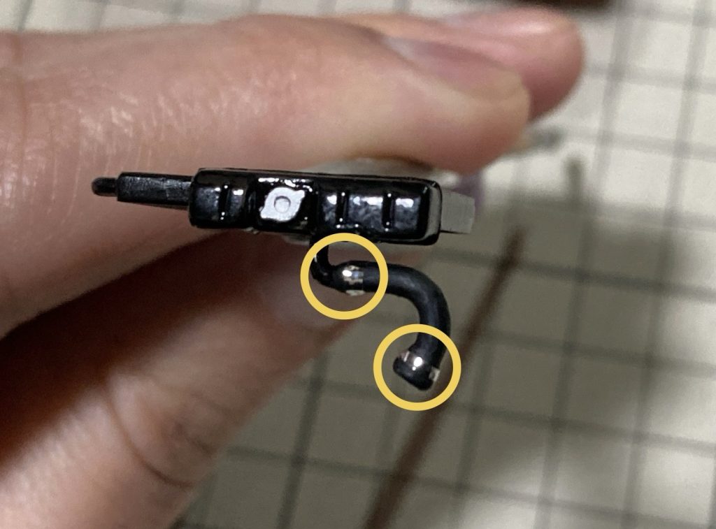実車の画像を確認すると2カ所がメッキバンドで留められていますのでこちらもミラーフィニッシュでいきます。