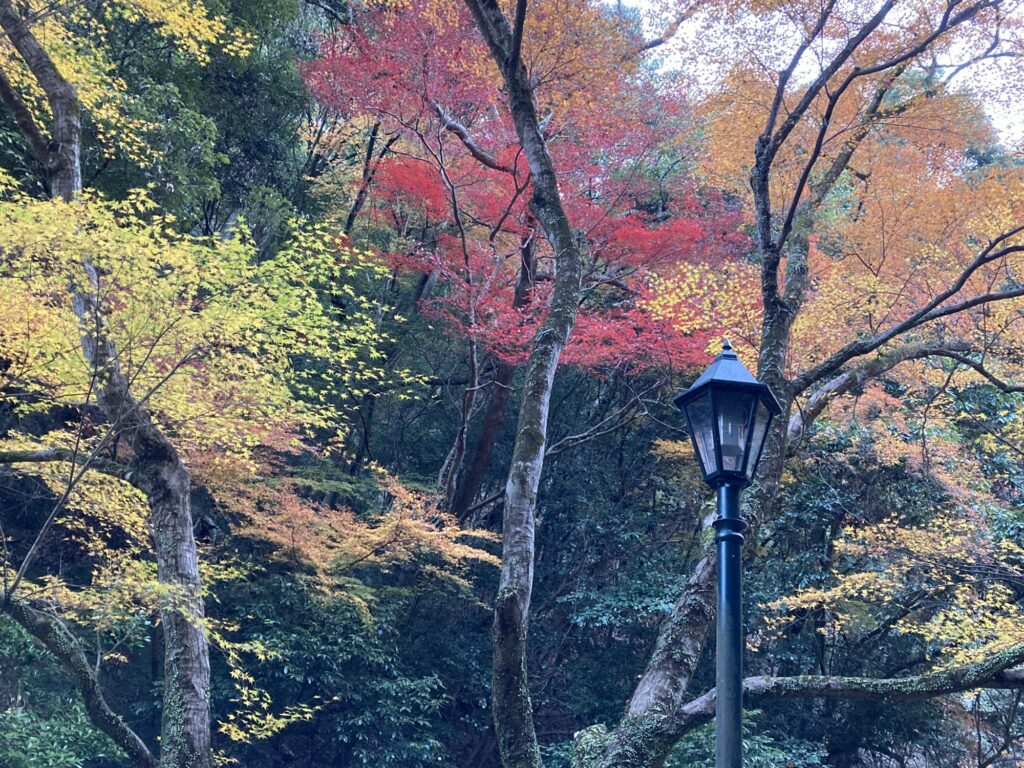 12月にもなるとまばゆい赤の葉は少ないものの色とりどりの樹々がありました。